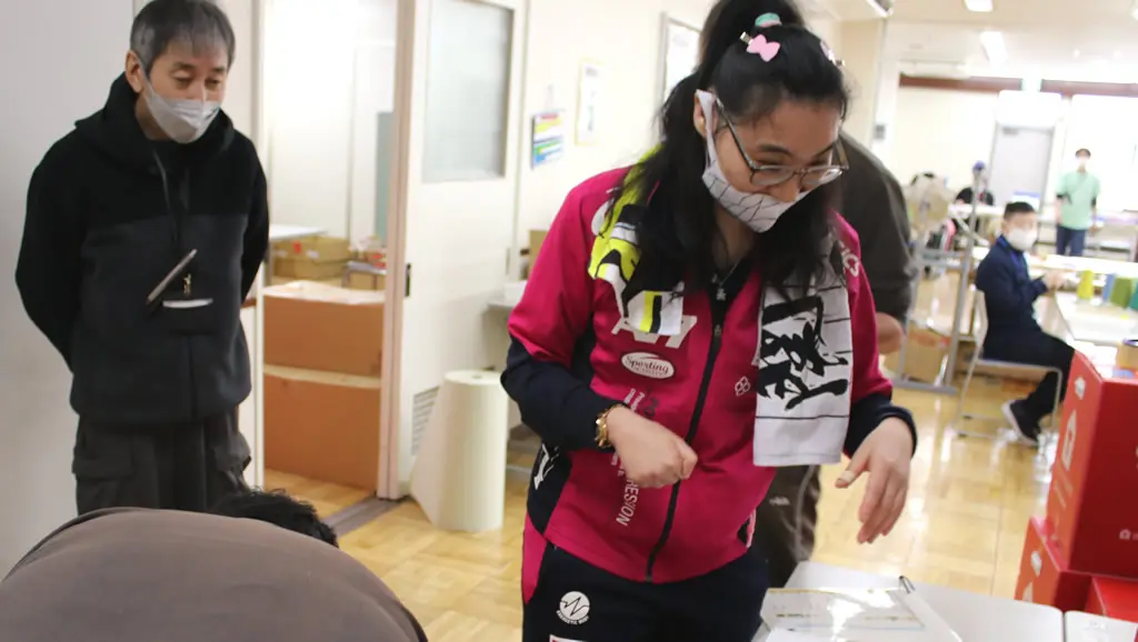 並べ終わると、支援スタッフの方が一覧表と照らし合わせてチェックします。